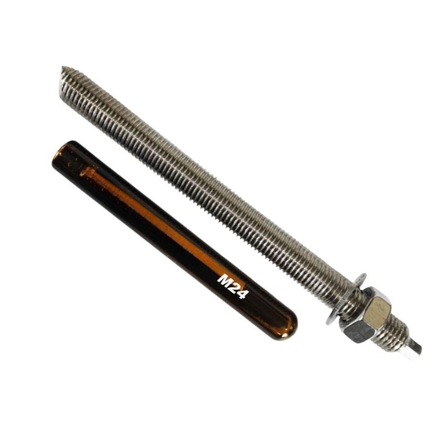 Bulong hóa chất M24 được sản xuất từ vật liệu thép có cường độ chịu lực cao, có thể phủ mạ kẽm hoặc làm từ inox nhằm tăng khả năng chống ăn mòn.