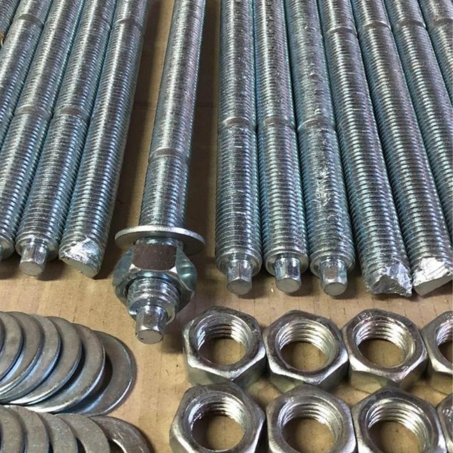Phụ kiện đi kèm: Long đen, đai ốc, và dụng cụ định tâm giúp cố định bulong đúng vị trí.