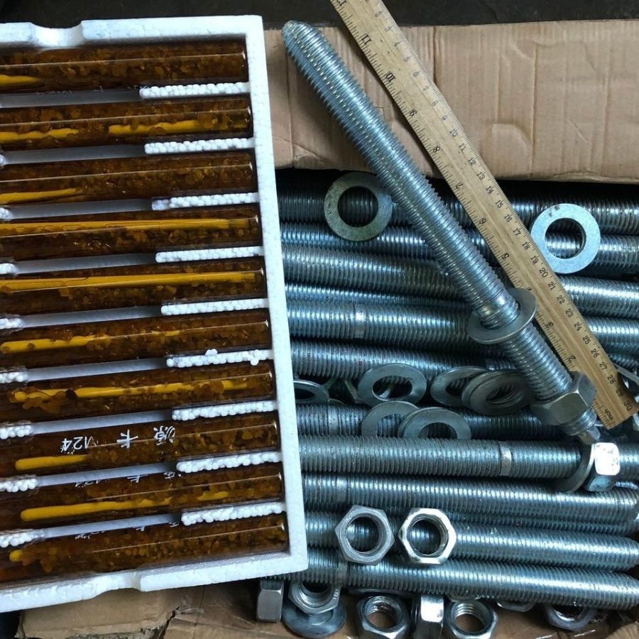 Sử dụng ống chứa keo epoxy hoặc polyester đóng sẵn. Khi lắp đặt, bulong được xoay vào ống, làm vỡ lớp thủy tinh và trộn đều keo – phù hợp cho thi công nhanh, tải trọng trung bình.